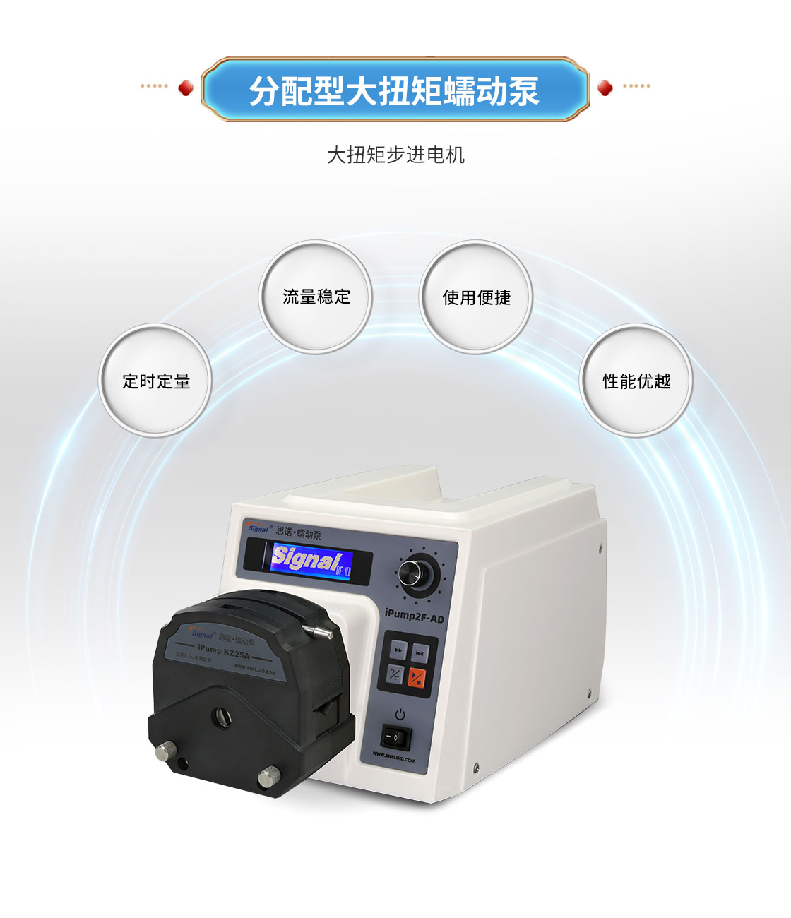 2.大扭矩步進電機驅動,適合多泵頭串聯使用;